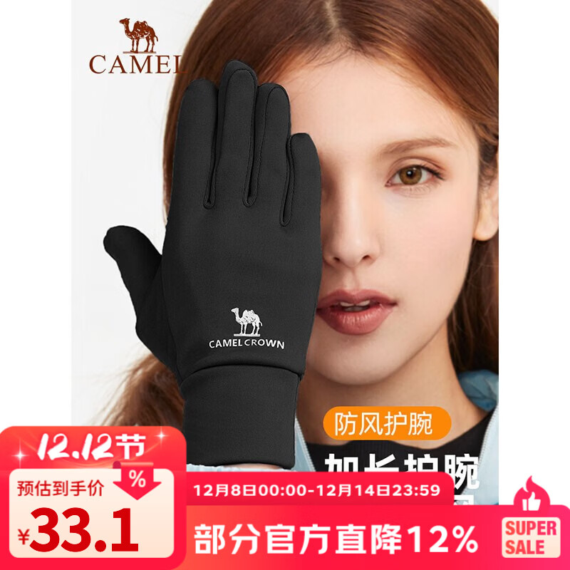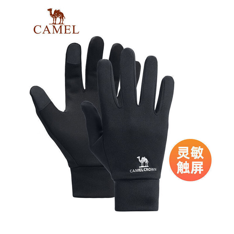 骆驼(CAMEL)骆驼触屏手套男女运动秋冬天薄款骑行防寒加绒保暖手套 【薄绒内里】墨黑,A1W3GZ103 L