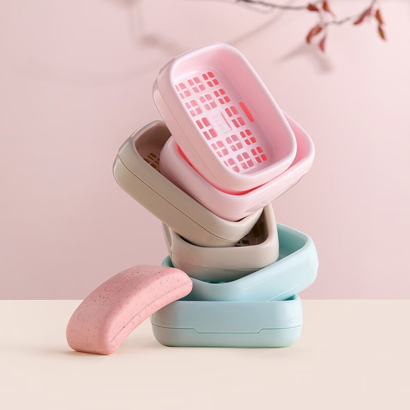茶花(CHAHUA)双层沥水肥皂盒创意卫生间沥水香皂架肥皂架置物架免打孔新款 圆润皂盒3个装(随机颜色)
