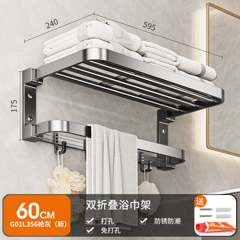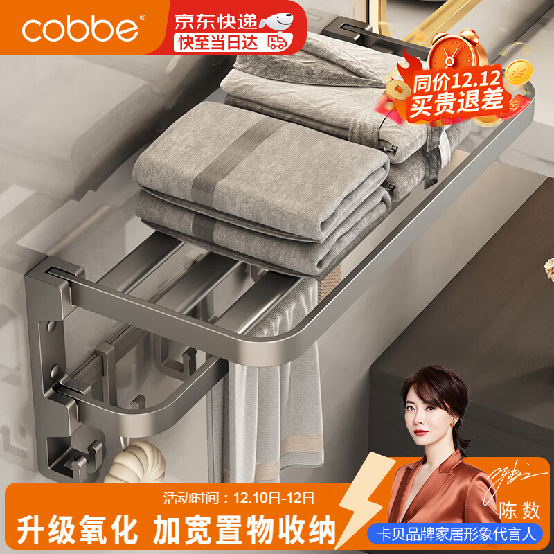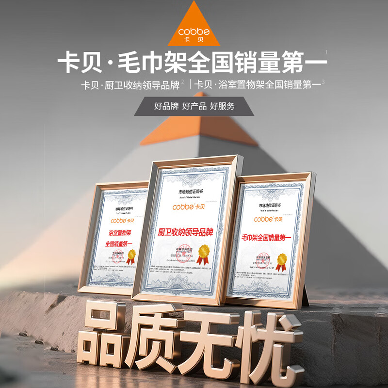 卡贝(cobbe)毛巾架免打孔卫生间置物架浴室浴巾架厕所太空铝免钉卫浴挂件挂杆