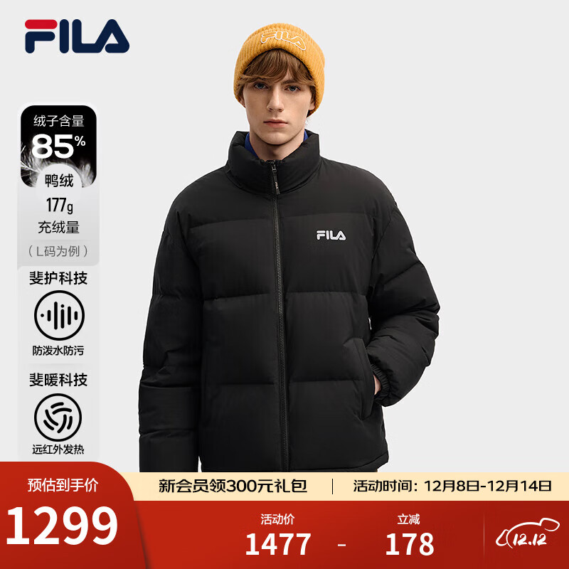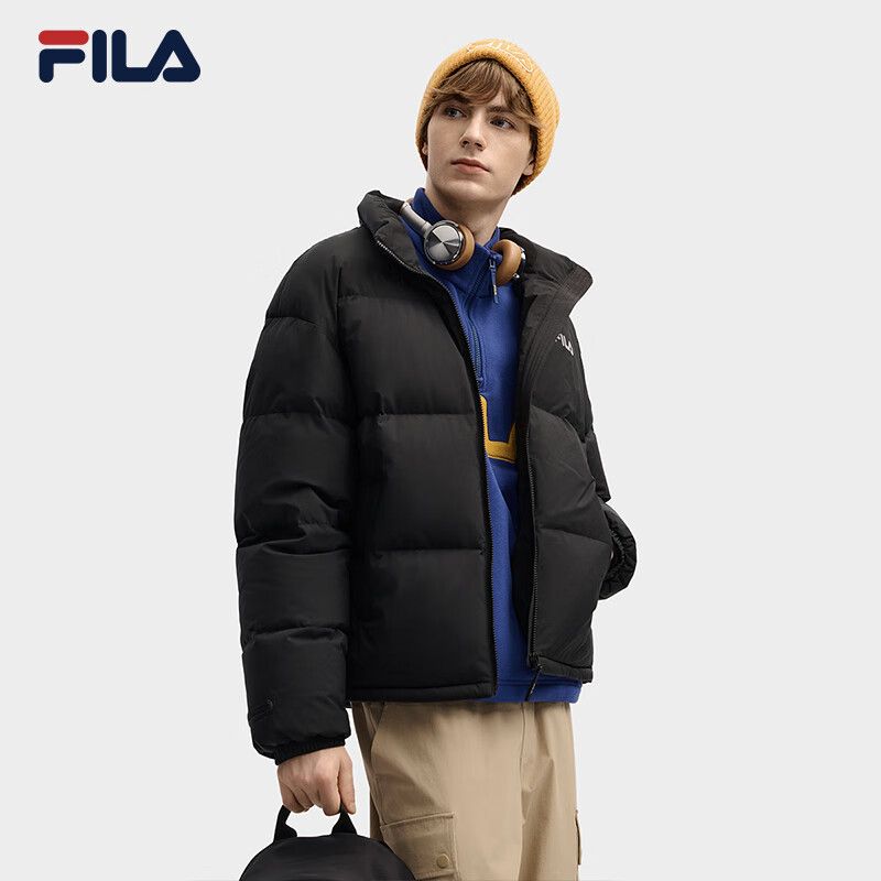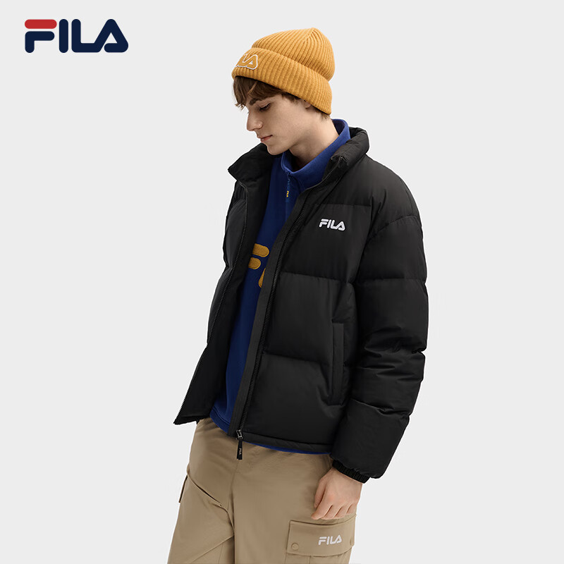 FILA 斐乐官方男士羽绒服2025冬季新款时尚休闲舒适保暖连帽外套 正黑色-BK L 175/96A/L