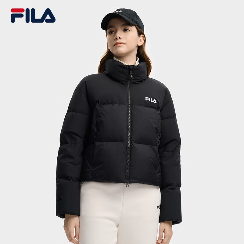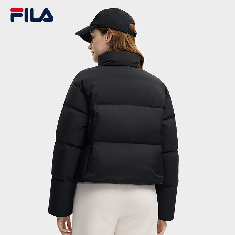 FILA 斐乐杨幂同款女士羽绒服2025冬季新款防泼水短款RGB多彩羽绒外套 正黑色-BK M 165/84A/M