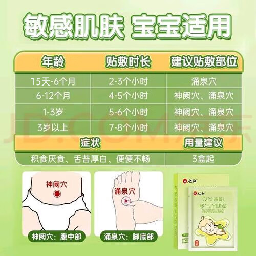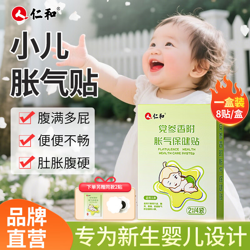 仁和婴儿胀气贴0-3个月易撕亲肤新生儿肚脐贴宝宝防胀气贴 经典胀气贴【8贴/盒+2贴/袋】