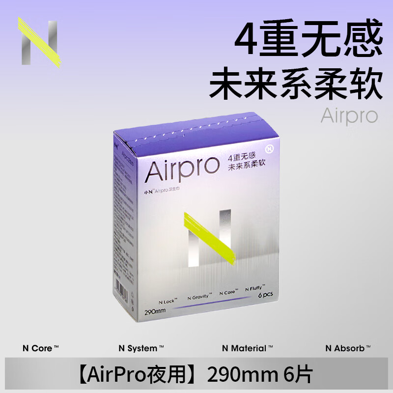 小N卫生巾【随心任选】日夜用姨妈巾安睡裤棉柔极薄姨妈经期卫生巾 【AirPro夜用】290mm 6片