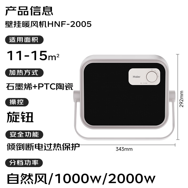 海尔(Haier)石墨烯取暖器家用壁挂式浴室暖风机防水卫生间电热电暖器电暖气速热取暖炉热风机烤火炉HNF-2005