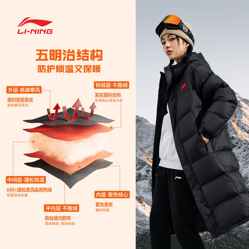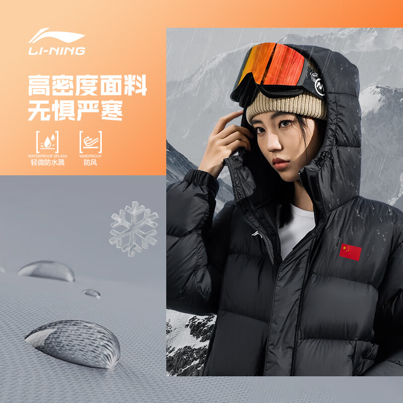 李宁(LI-NING)羽绒服国旗男女长款羽绒服白鸭绒防风保暖加厚加长国家队羽毛球款 黑色(长款)赠国旗贴 L (175) 适合120-140斤