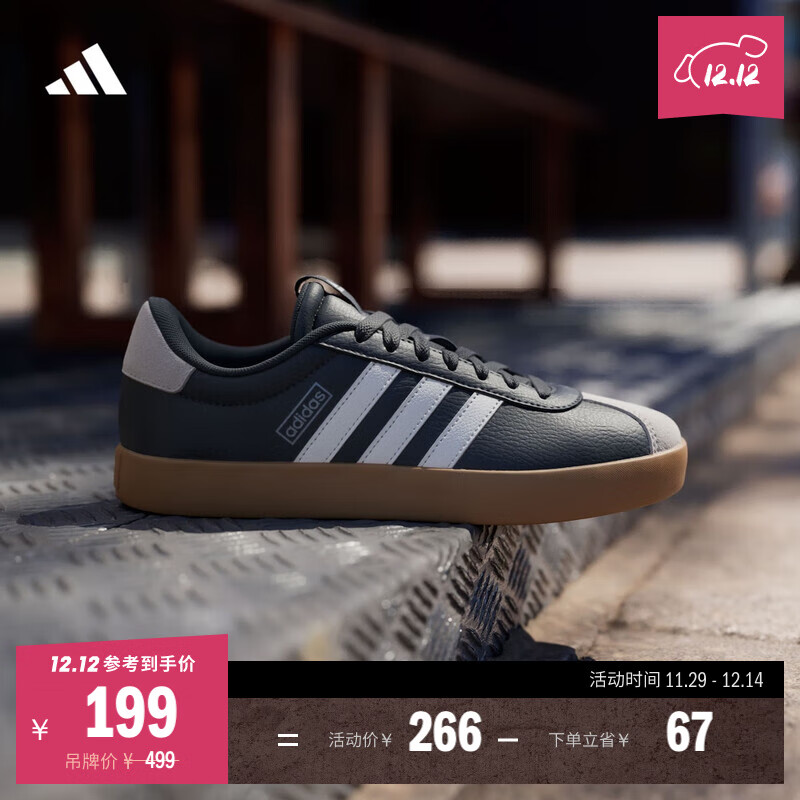 adidas「T头鞋」VL COURT 3.0休闲板鞋德训鞋女子阿迪达斯轻运动 碳黑/亮白/矾土棕 36.5