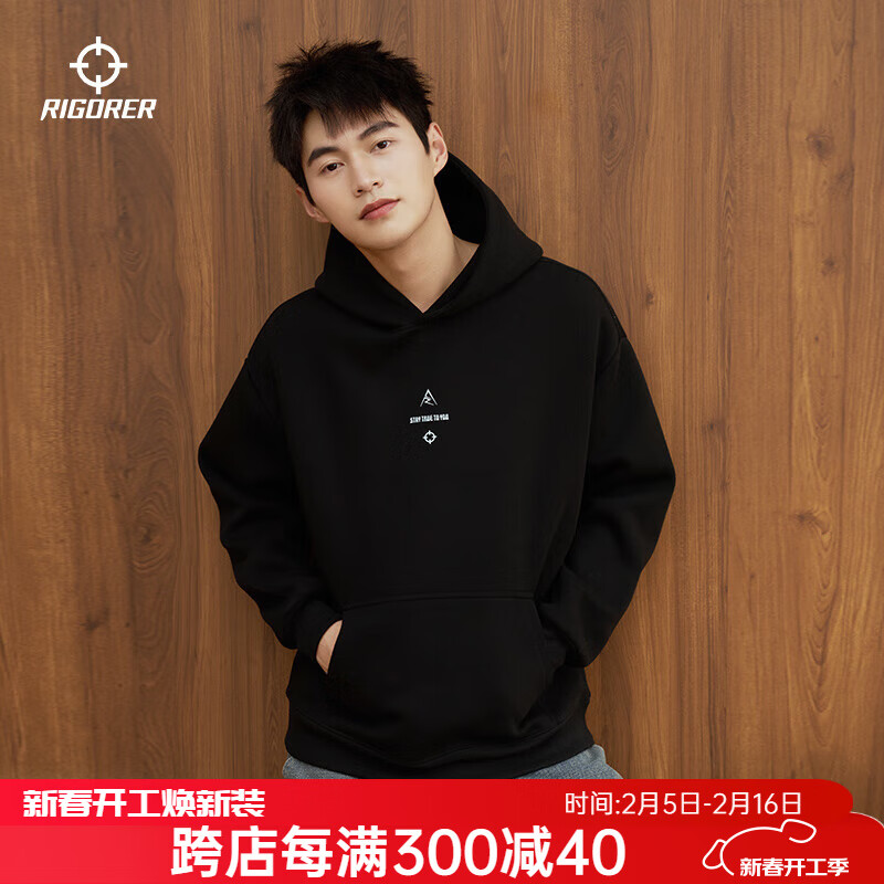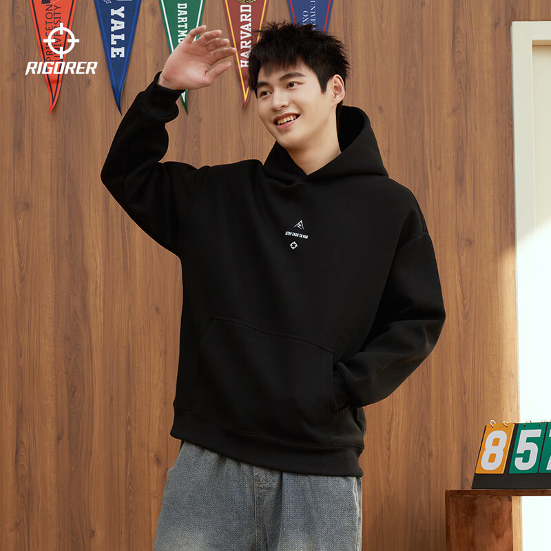 商品: 准者重磅400G连帽多彩卫衣长袖套头T恤集梦116同款运动休闲纯色套头帽 纯正黑-AR 4XL (195)