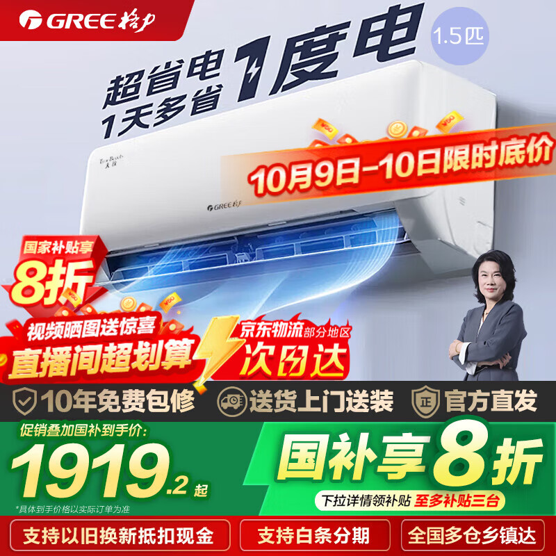 格力(GREE)空调天仪1.5匹/大1匹新一级能效变频壁挂式卧室省电空调挂机快速冷暖独立除湿以旧换新国家补贴20% 1.5匹 一级能效 丨天仪【适用15-22㎡】