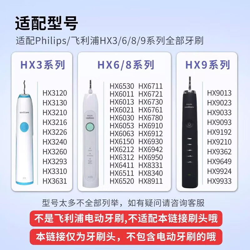 小股适用飞利浦电动牙刷头替换HX6730/3226/3216/6616/6530/6721 4支 FLP通用清洁3/6/9系列