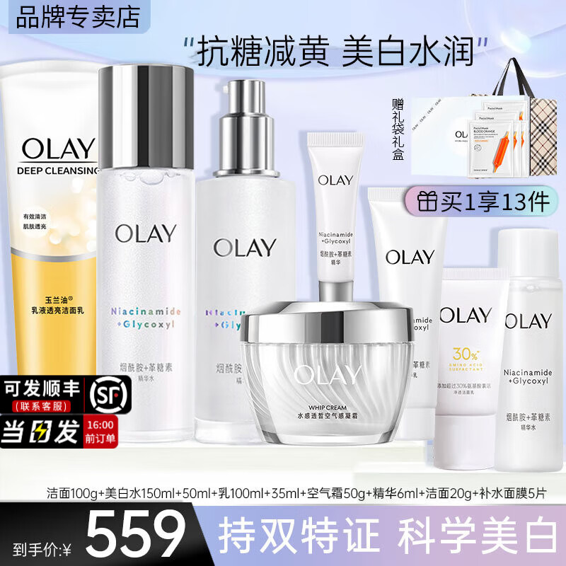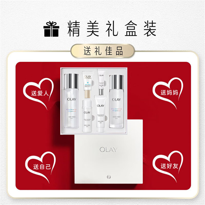 玉兰油(OLAY)小白瓶美白水乳礼盒护肤化妆品套装女抗糖减黄提亮保湿生日礼物 洁面+水+乳+面霜