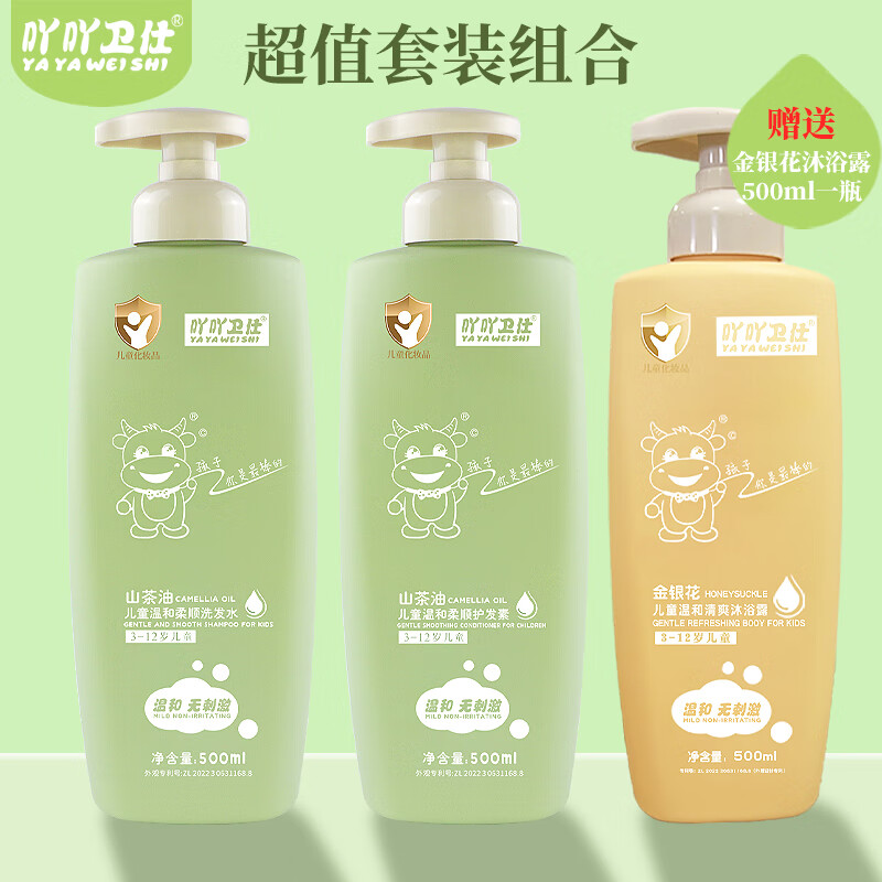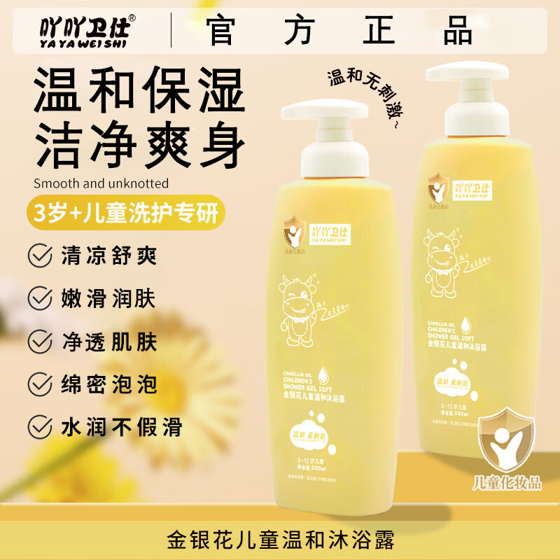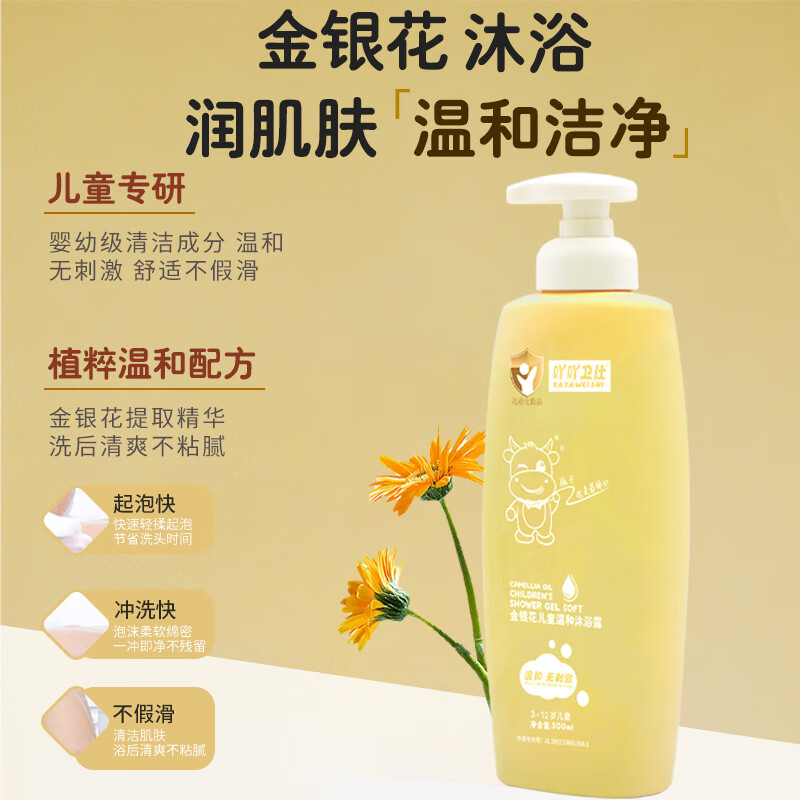 吖吖卫仕金银花儿童温和沐浴露3-12岁男女宝宝专用沐浴乳保湿温和清洁爽身 【买三送一】沐浴*2+洗发+护发