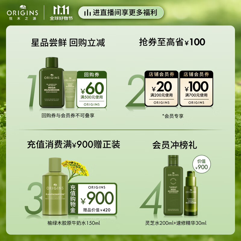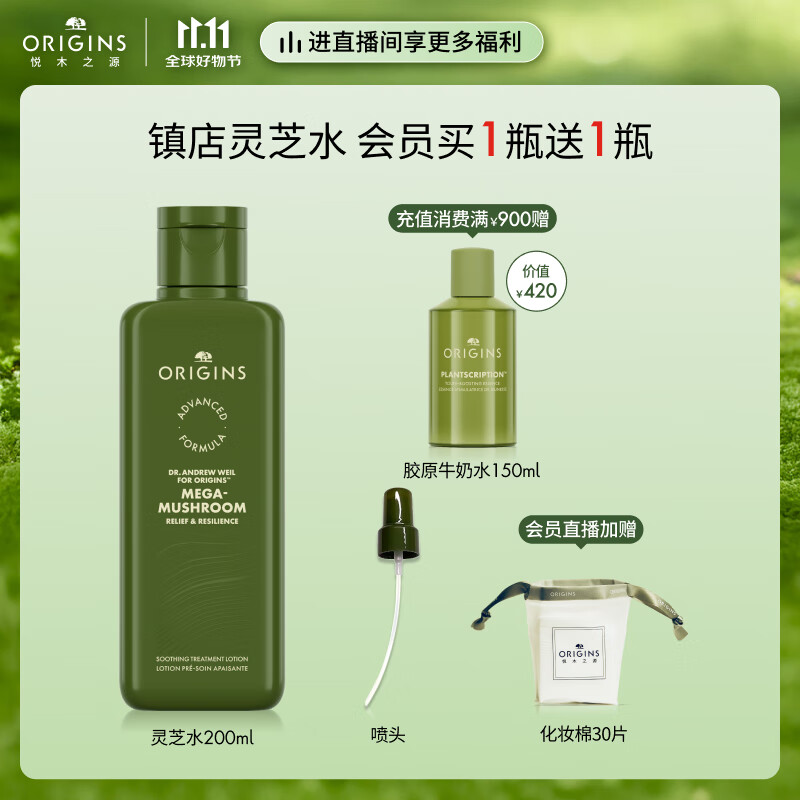 悦木之源(Origins)灵芝菌菇水200ml保湿爽肤水精华护肤品湿敷补水喷雾生日礼男女