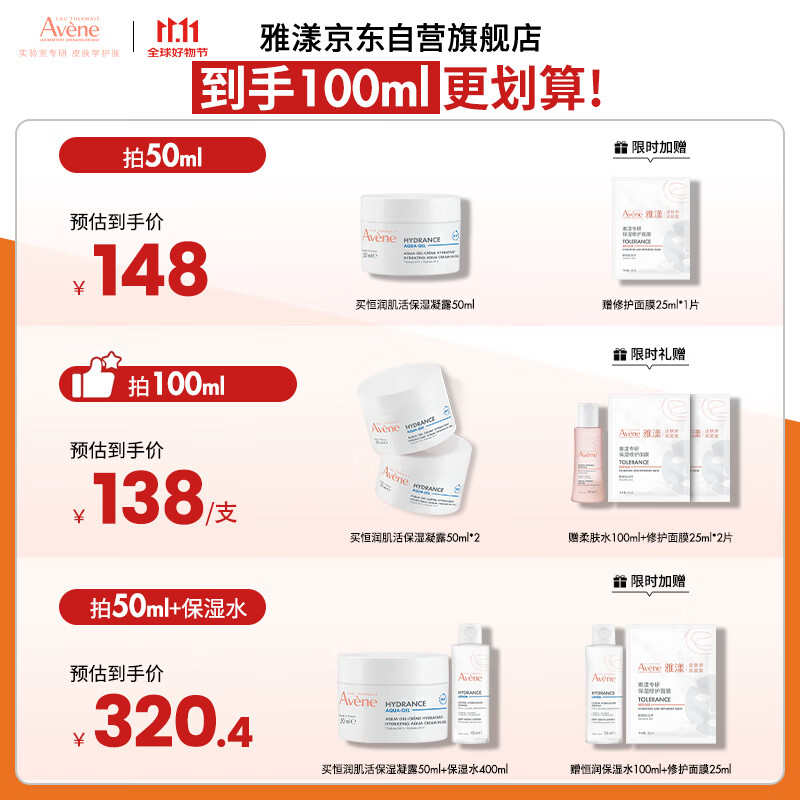 雅漾(Avene)【樊振东同款】恒润肌活保湿凝露50ML敏肌乳液面霜11.11抢先购