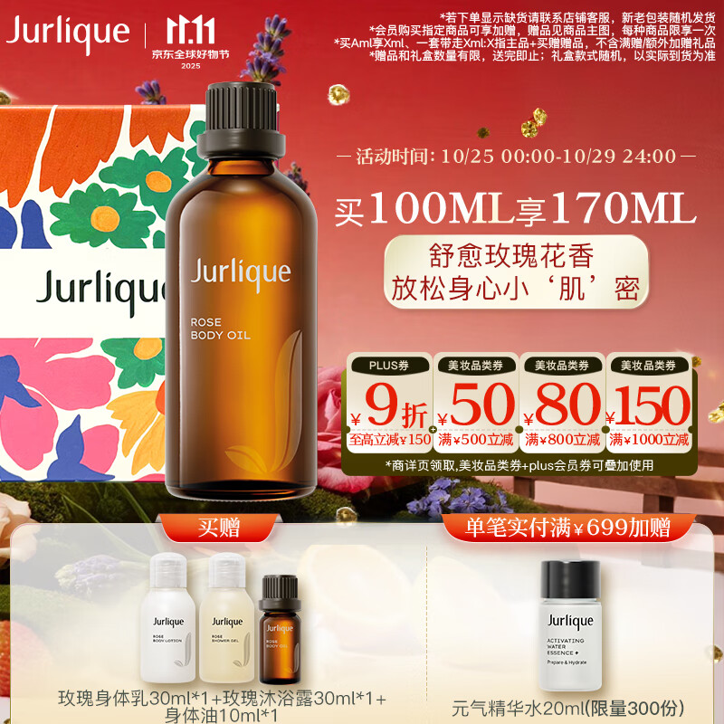 茱莉蔻(Jurlique)玫瑰按摩油100ML礼盒 身体精油滋润保湿嫩肤护肤 生日伴手礼