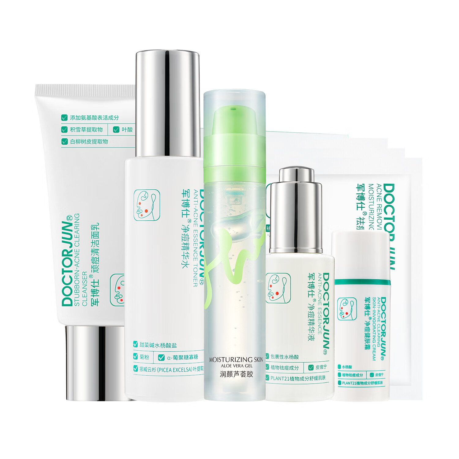 军博仕净痘精华组合 植物草本 补水保湿 舒缓痘痘肌肤 祛痘控油护肤品 【重度痘痘六件套】