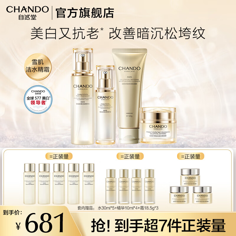 自然堂雪肌追光面霜 577美白祛斑霜紧致淡纹修护滋润霜护肤品 (四件套)洁水霜精 365g