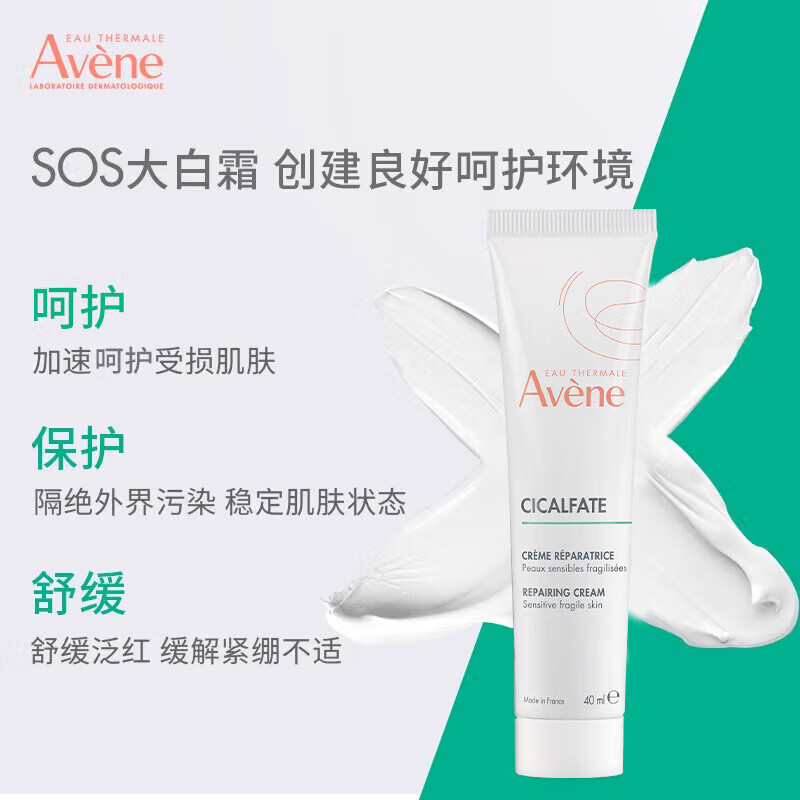 雅漾(Avene)倍护霜大白霜修护舒缓泛红淡印敏感保湿补水乳液面霜 圣诞节礼物 大白倍护霜40ml*2
