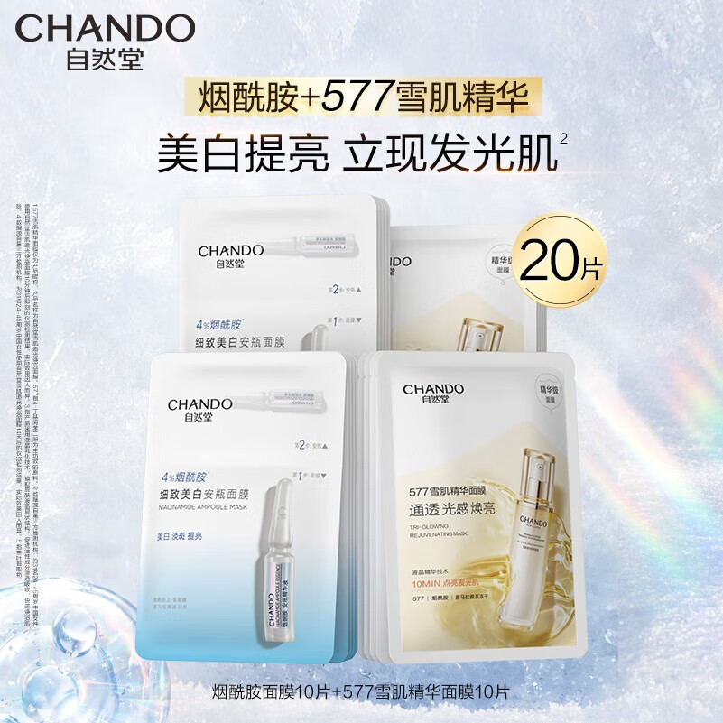 自然堂安瓶面膜 烟酰胺补水保湿美白弹嫩细致舒缓肌肤面膜套装护肤品女 烟酰胺+577雪肌精华面膜 20片 (10分钟速焕亮)