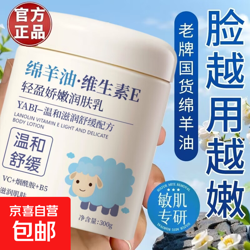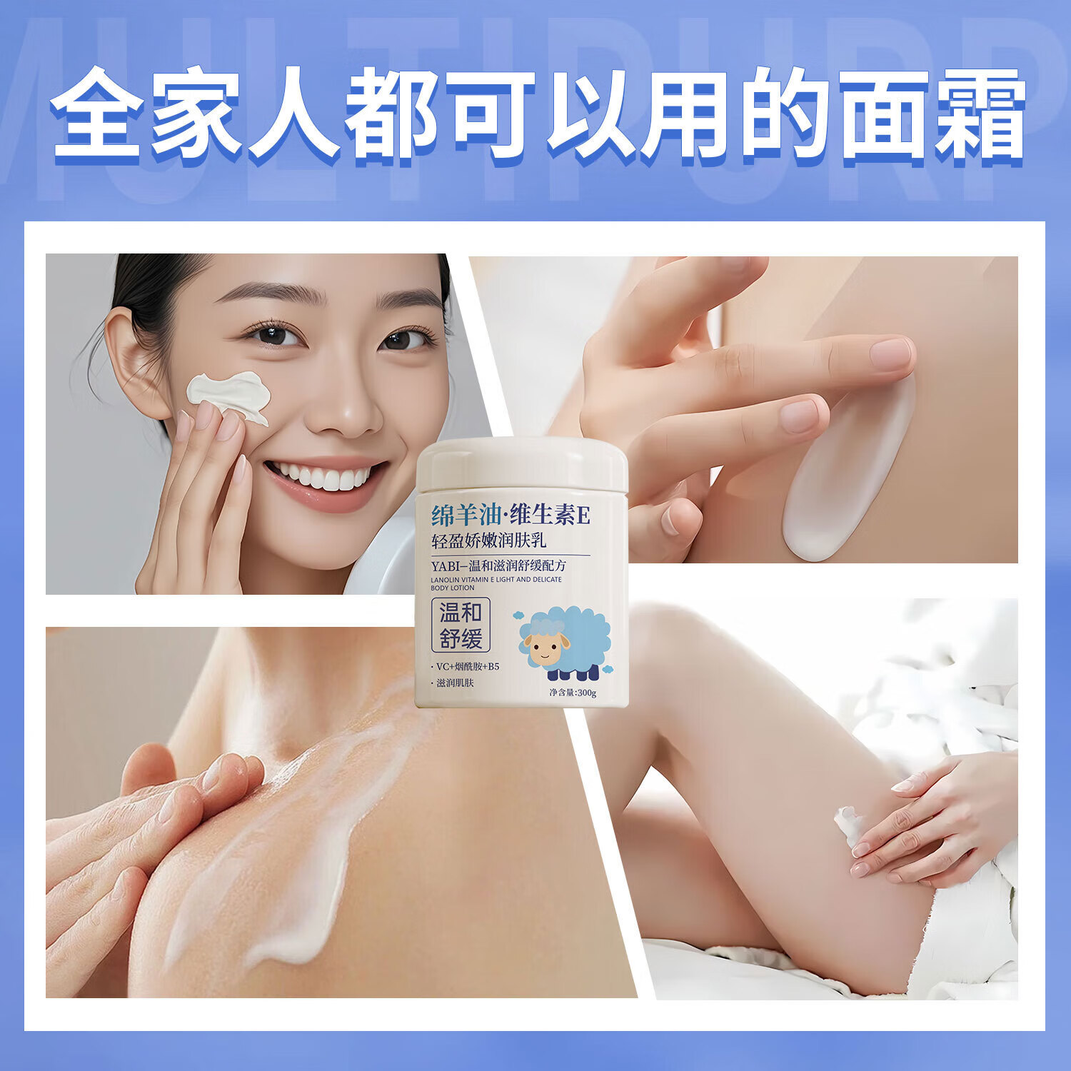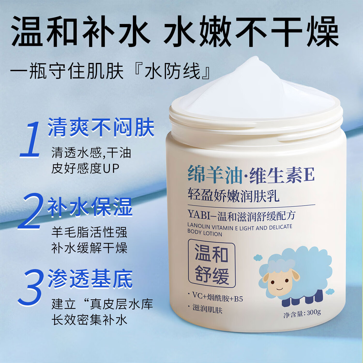 YABI绵羊油维生素e乳面霜身体乳秋冬补水保湿干皮防裂起皮儿童霜 300g*1瓶