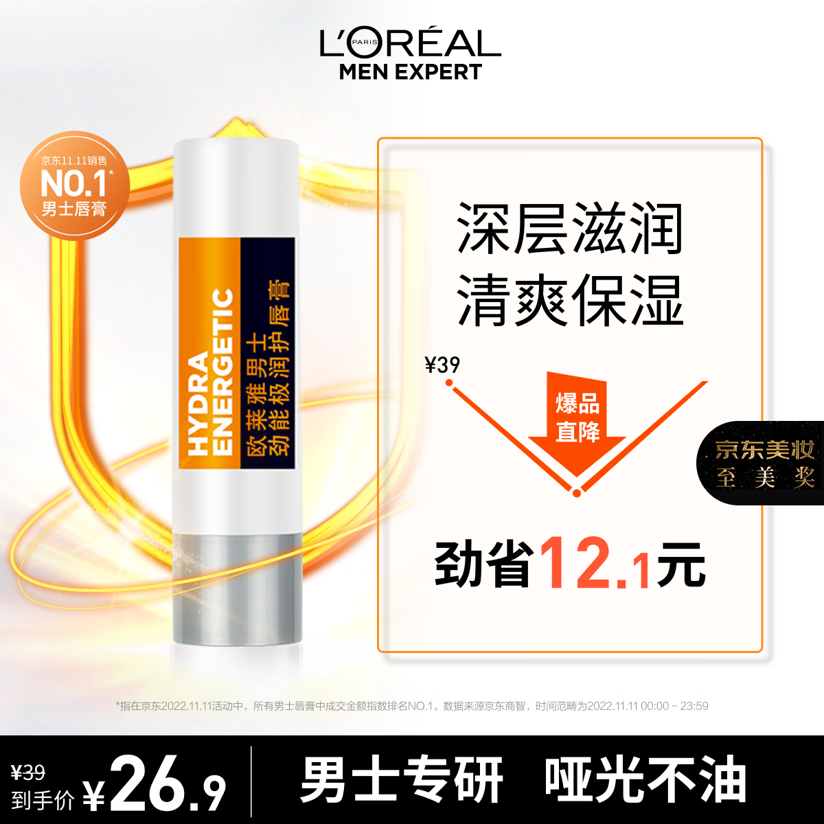 欧莱雅男士劲能润唇膏护唇膏3.5g补水保湿防嘴唇干裂脱皮秋冬滋润圣诞