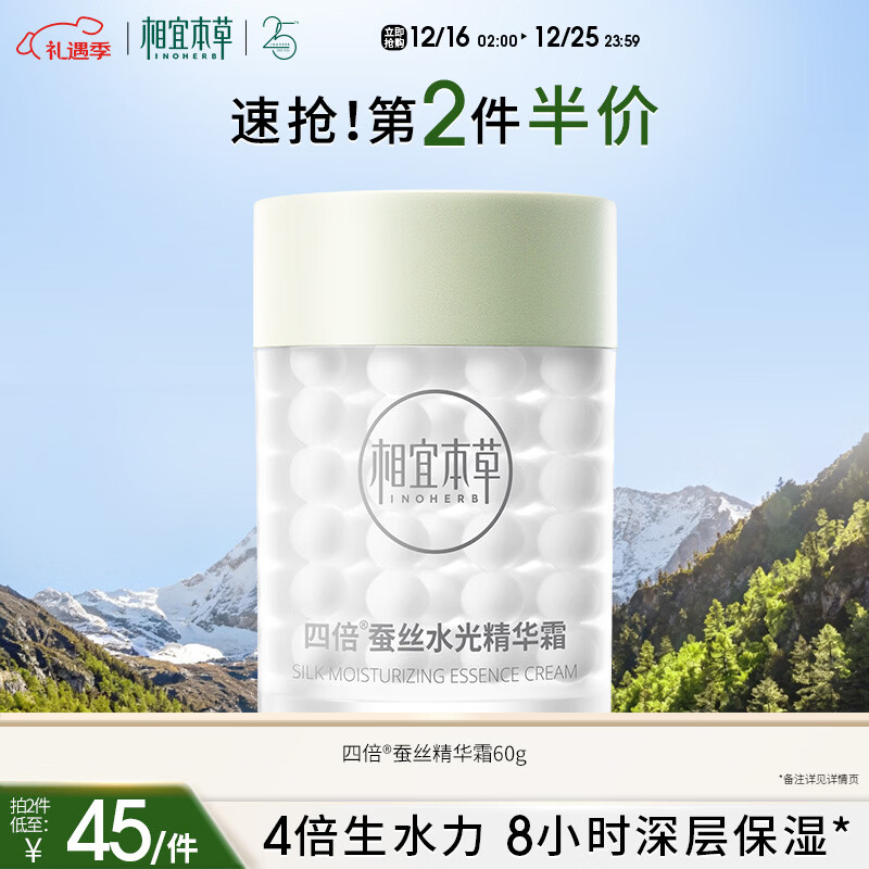 相宜本草四倍蚕丝水光精华霜60g(保湿 提亮 补水滋润)圣诞礼物