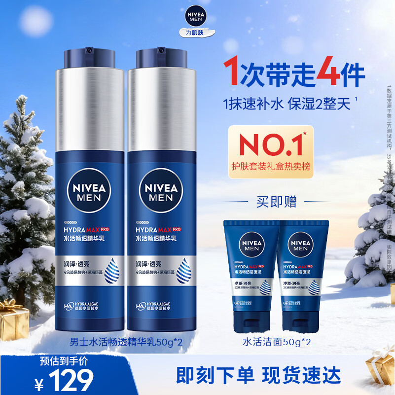 妮维雅(NIVEA)男士【补水保湿】护肤品水活保湿精华乳双支小蓝管送男友礼物