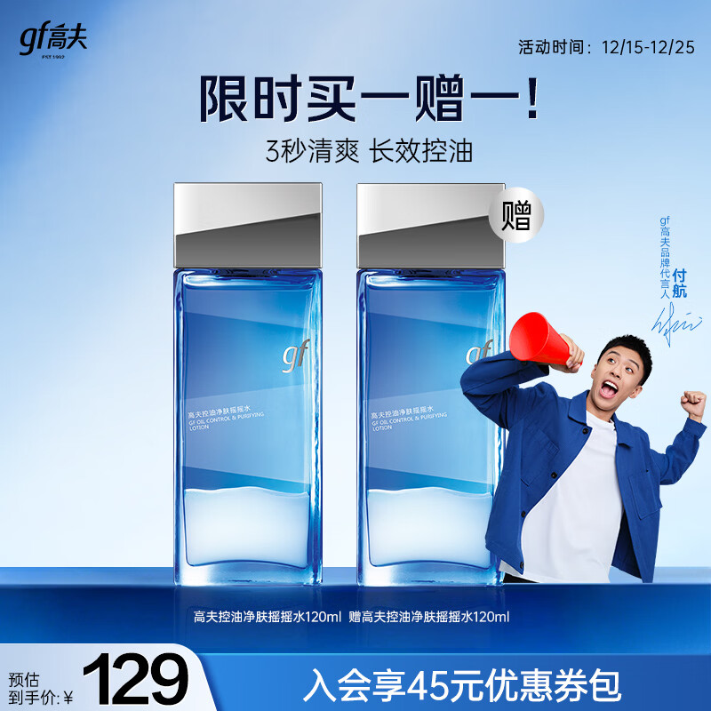 高夫控油净肤摇摇水120ml 补水保湿快吸收细致毛孔长效控油男士爽肤水