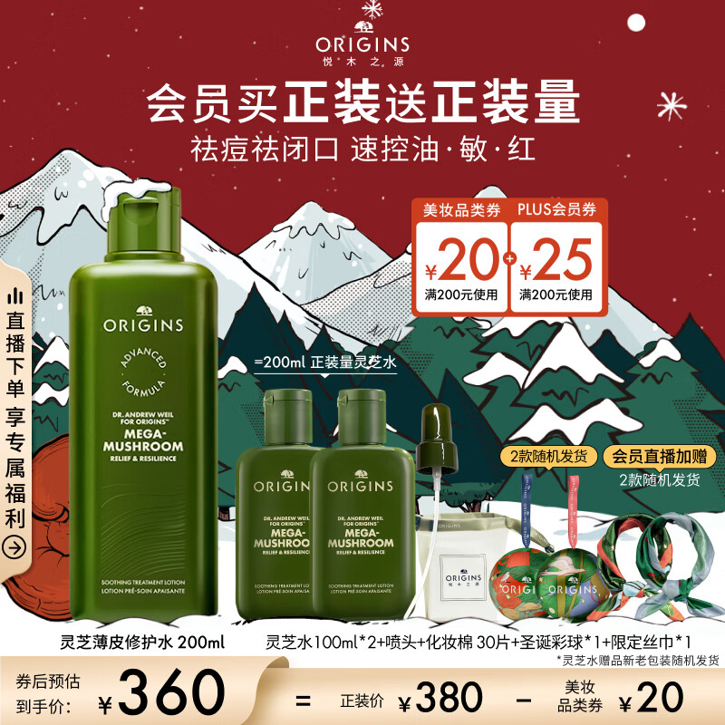 悦木之源(Origins)灵芝菌菇水200ml保湿爽肤水精华护肤品湿敷补水喷雾圣诞礼送女友