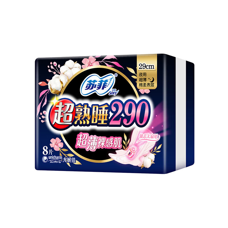 苏菲卫生巾超熟睡420/350/290超长夜用量多日用女生姨妈巾 290mm裸感肌8片