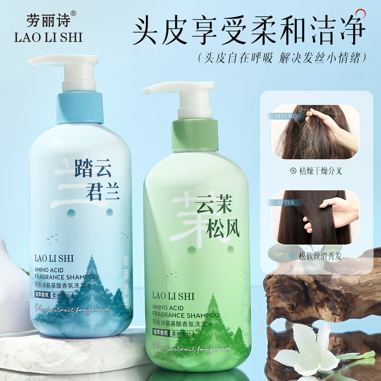 劳丽诗氨基酸洗发水植萃净爽头油头痒柔顺蓬松留香护发洗头膏露男女洗护 柔顺亮泽-氨基酸洗发水 300ml*2瓶