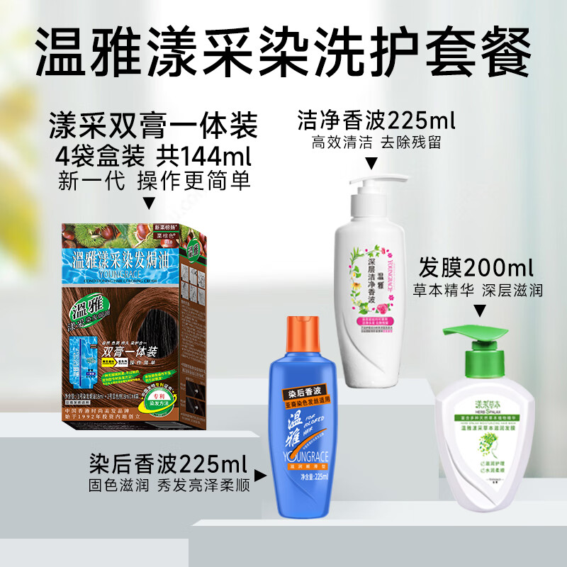 温雅漾采染发膏染发剂植物护发染头男士女士双膏一体装彩染4袋 栗棕色 【染洗护套餐一】(赠3袋染洗专配组合) 共144ml(4袋盒装)
