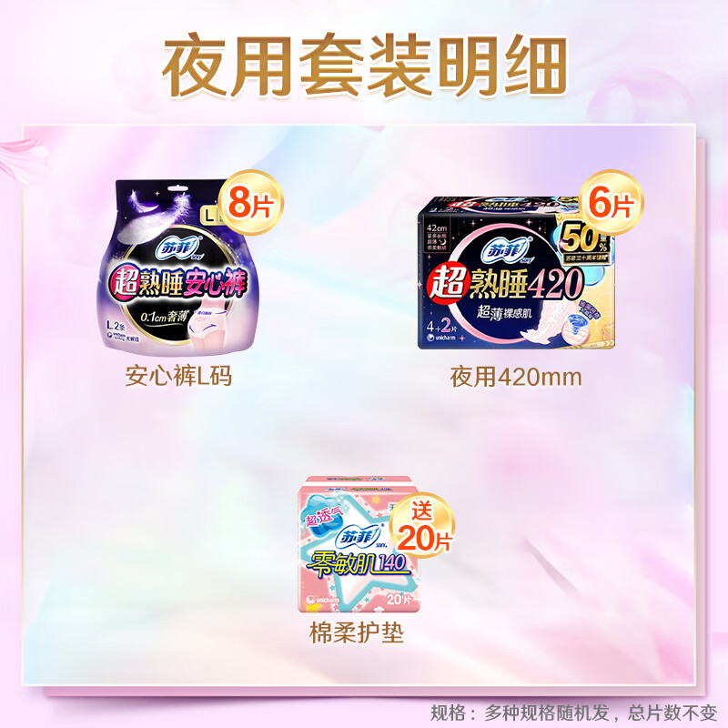 苏菲卫生巾超熟睡日夜用230+290mm组合装姨妈女整箱75片 【75片】日用+290+140组合