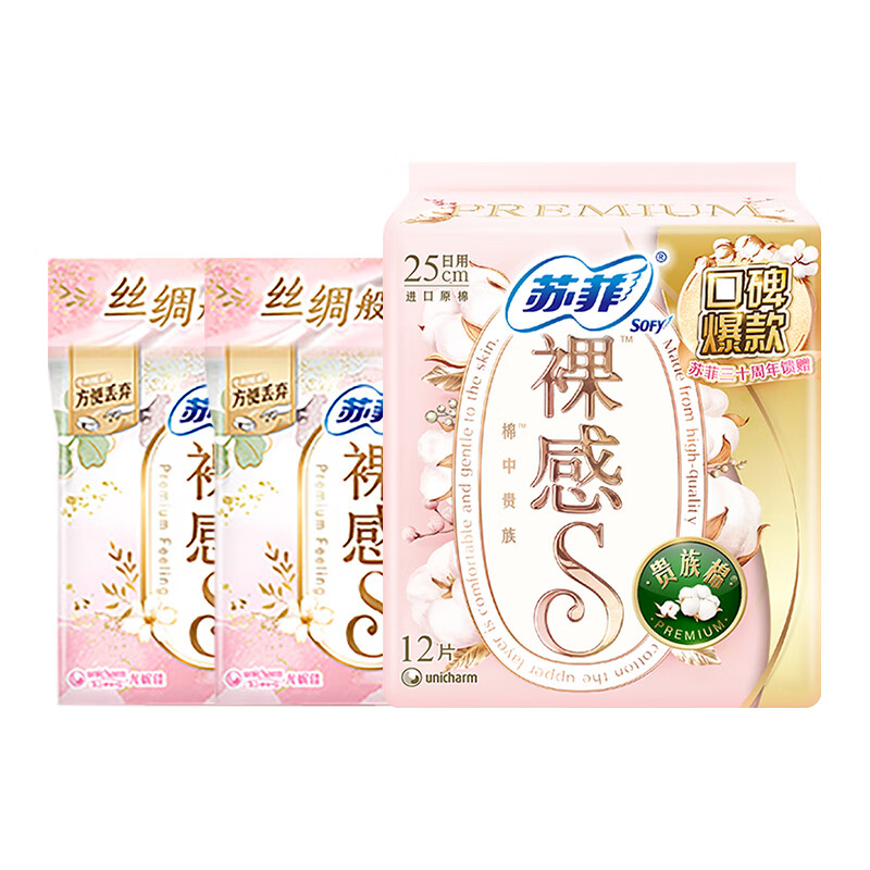 苏菲卫生巾裸感s贵族棉250日用夜用组合姨妈巾批发一整箱官方正品 贵族棉250mm16片【超值体验】