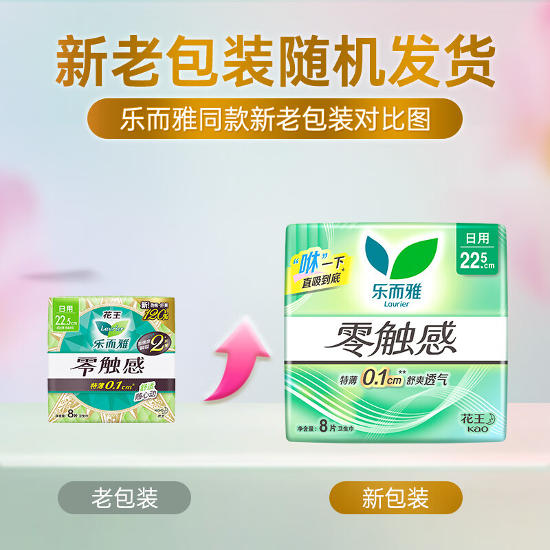 乐而雅花王乐而雅零触感卫生巾日用夜用防漏干爽亲肤姨妈巾 零触感日用22.5cm8片