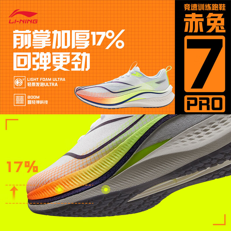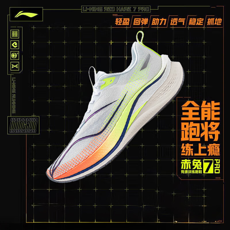李宁赤兔7 PRO丨跑步鞋男中考体测跳绳透气马拉松高回弹竞速训练跑鞋 【赤兔7 PRO-常规款】标准白/荧光黄绿(025款)-1 42