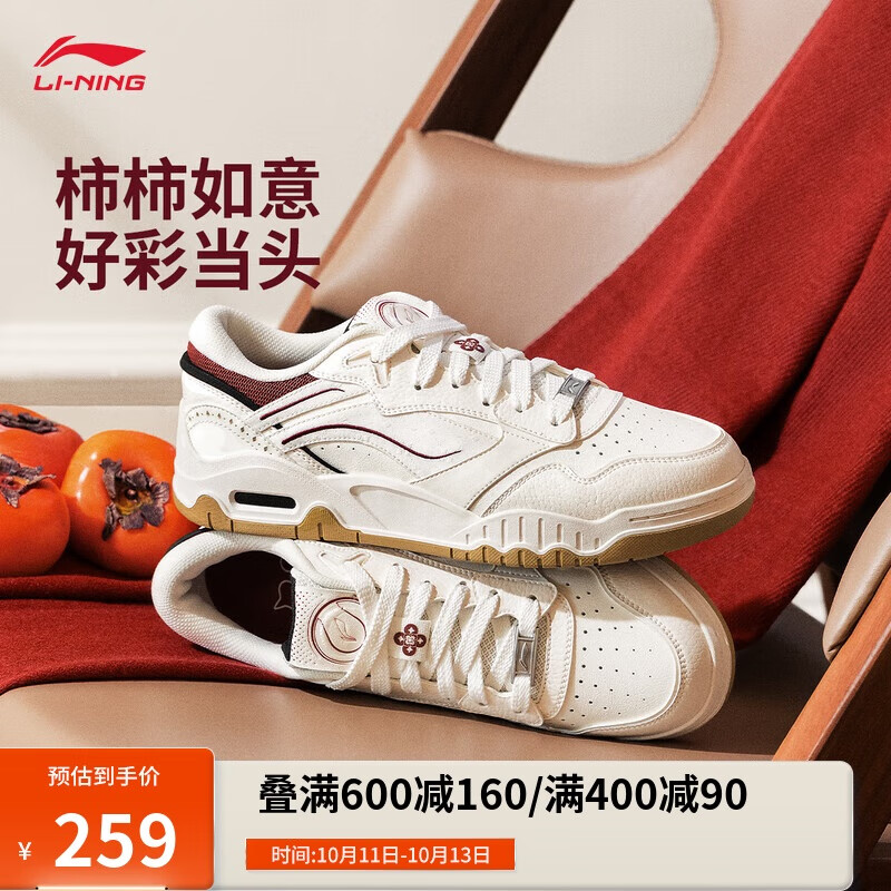 李宁月白3-柿柿如意板鞋男鞋2025新款透气缓震复古休闲鞋AGCV077