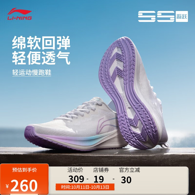 李宁吾跃丨跑步鞋透气网面女鞋舒适中考体测跳绳运动鞋ARST004