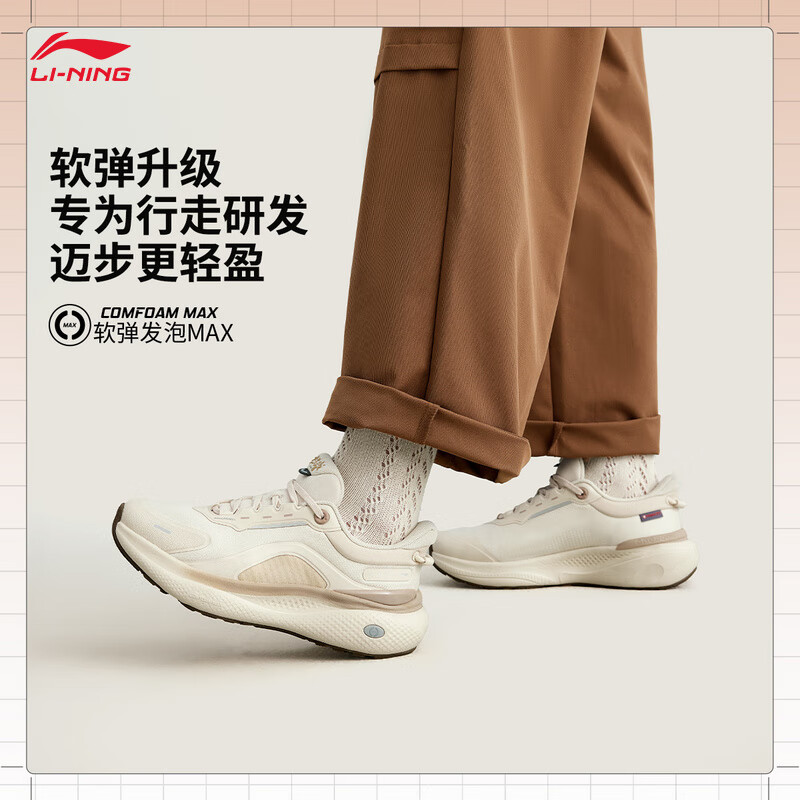 李宁SOFT PLUS 2|缓震防泼水潮流休闲鞋女子25新款百搭运动鞋AGLV084