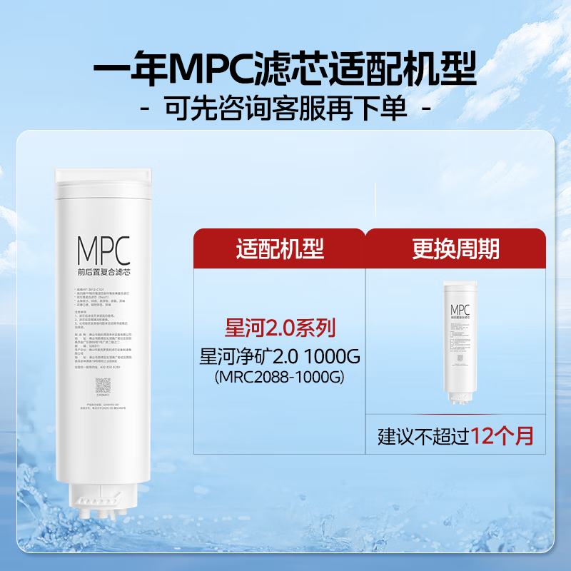 美的(Midea)0阻垢剂MPC滤芯适用MRC2088-1000G星河2.0净矿净水器双水机1000G MPC滤芯