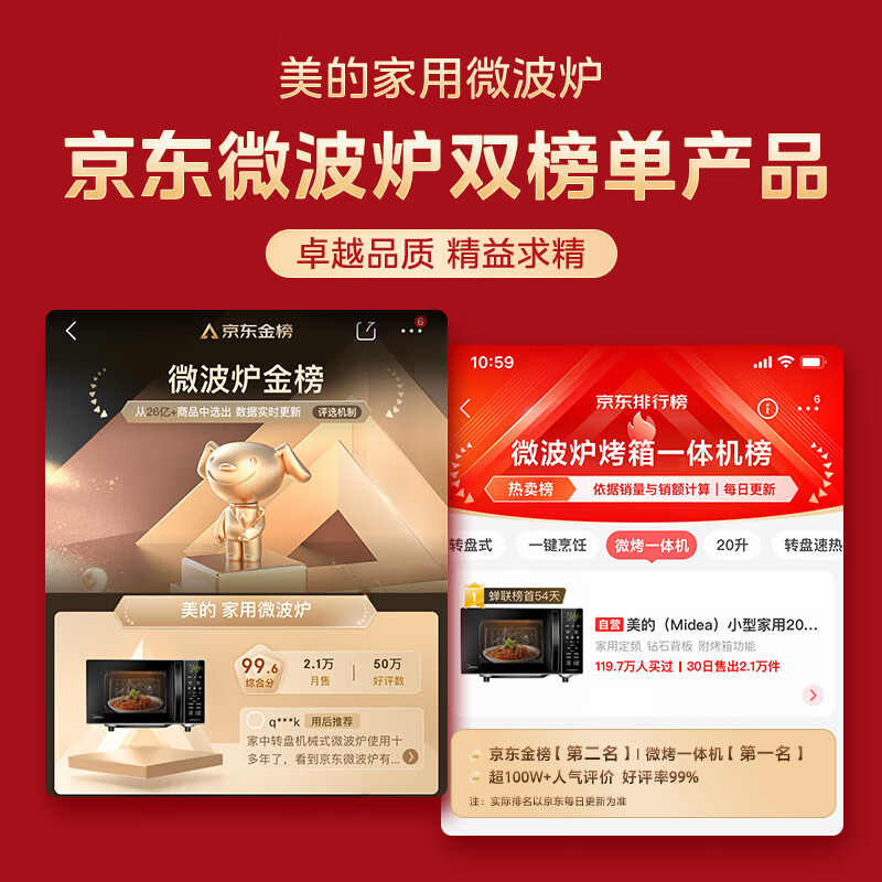美的(Midea)微波炉烤箱一体机 小型家用20升微波炉 光波加热 钻石背板(M1-L201B)