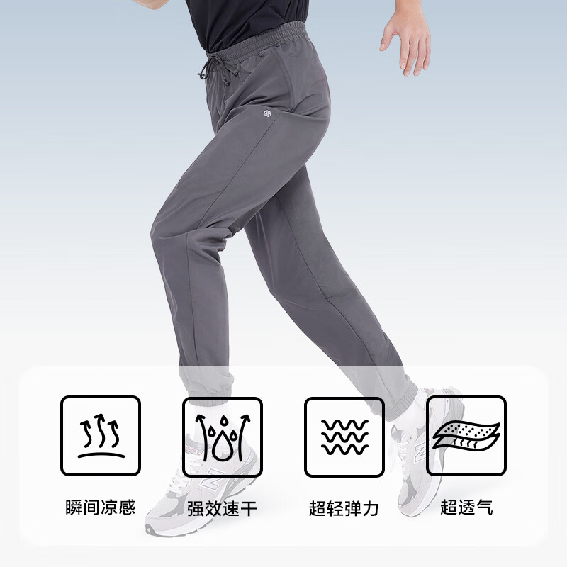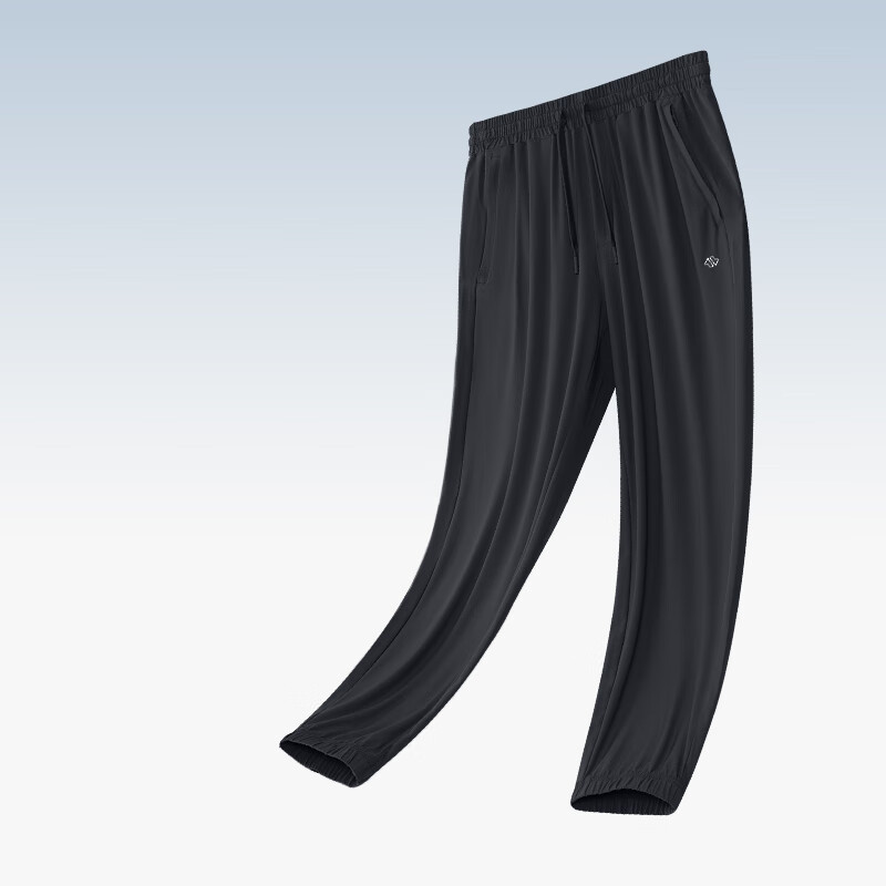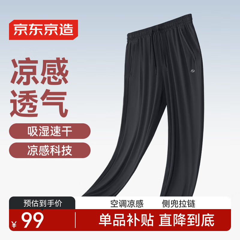 京东京造【防晒空调裤】速干冰丝凉感运动裤高弹透气跑步长裤男 黑色 L