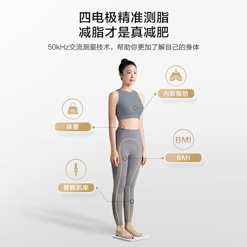 京东京造智能体脂秤【四电极】电子减体重家用高精准人体健康数据测量塑形体重称