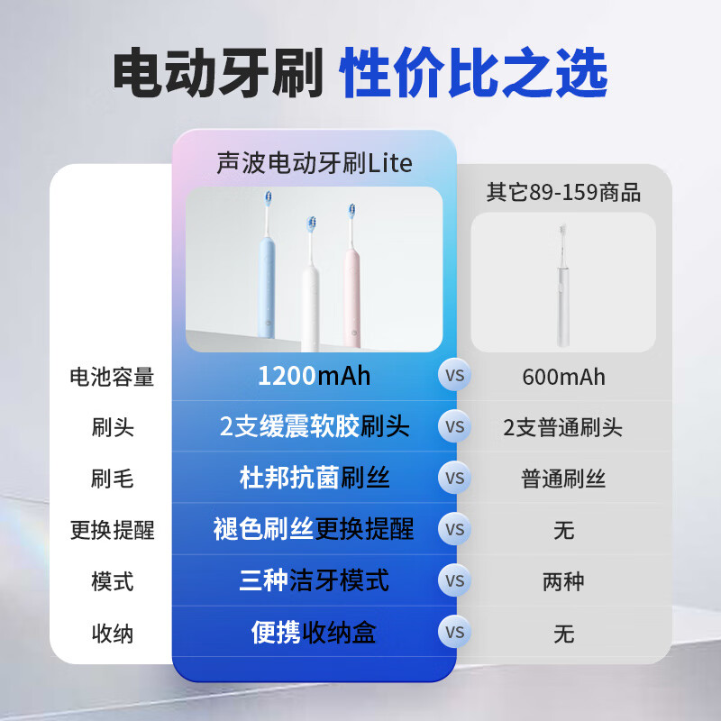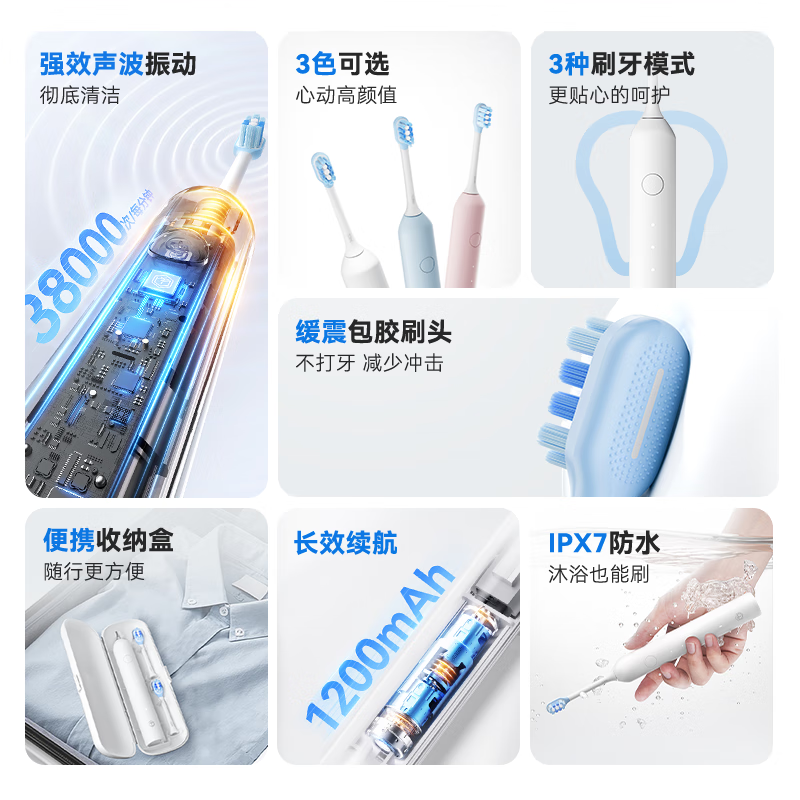 京东京造声波电动牙刷Lite白 3模式+2支缓震包胶刷头+收纳盒 长续航牙刷成人电动牙刷儿童男生生日礼物女