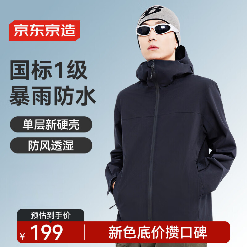 京东京造春秋穿山甲300冲锋衣男女单冲户外防水夹克硬壳外套 曜石黑L