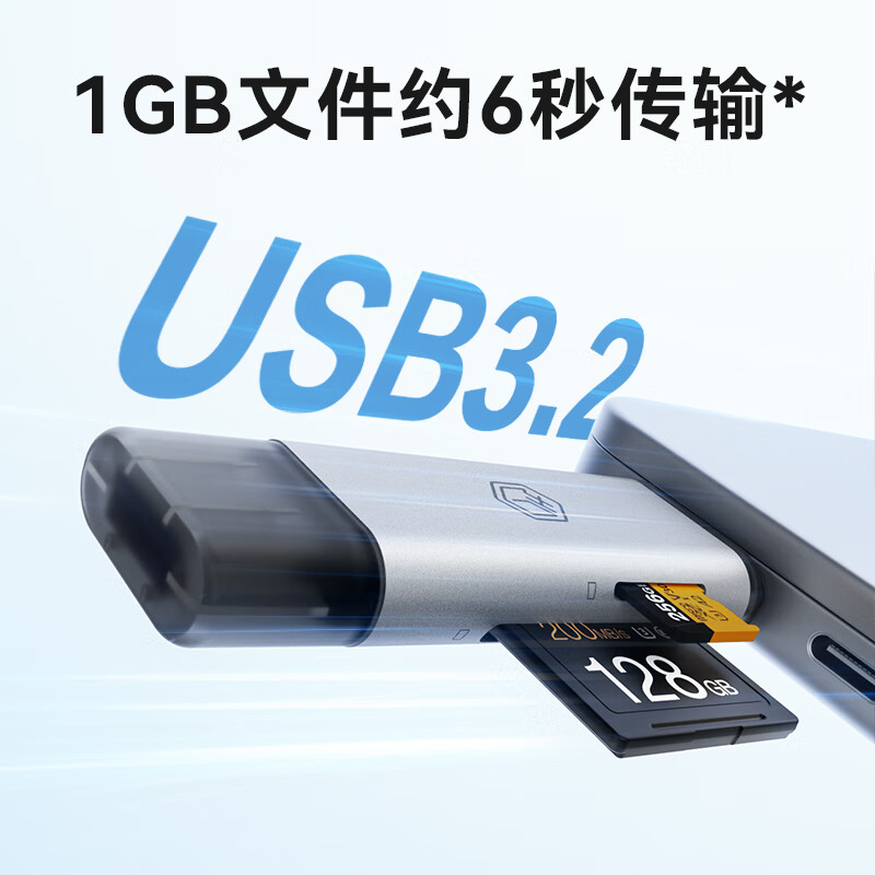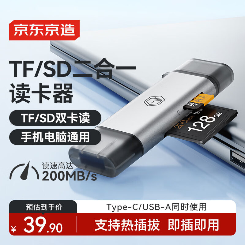 京东京造USB3.2 TF/SD二合一高速 USB/Type-C双口读卡器