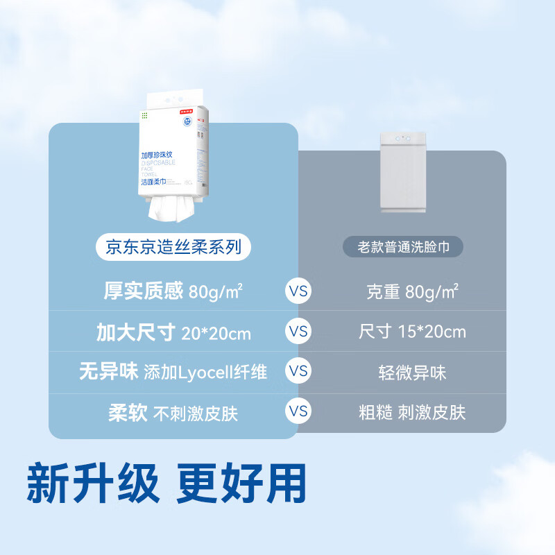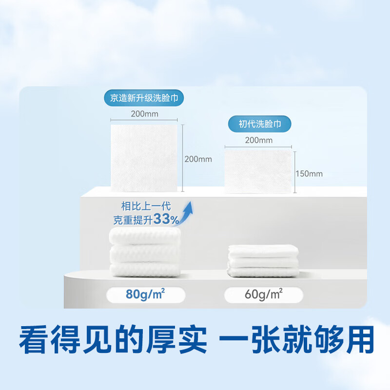 京东京造一次性洗脸巾180抽*1提悬挂式 超厚80g/㎡珍珠纹柔肤巾 擦脸巾