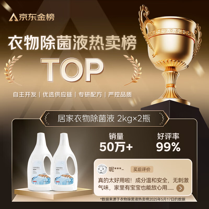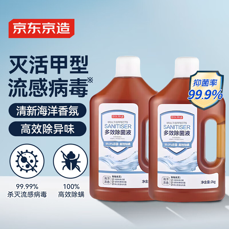 京东京造居家衣物除菌液2kg×2瓶 可配洗衣液消毒液99.9%杀菌除螨海洋香氛