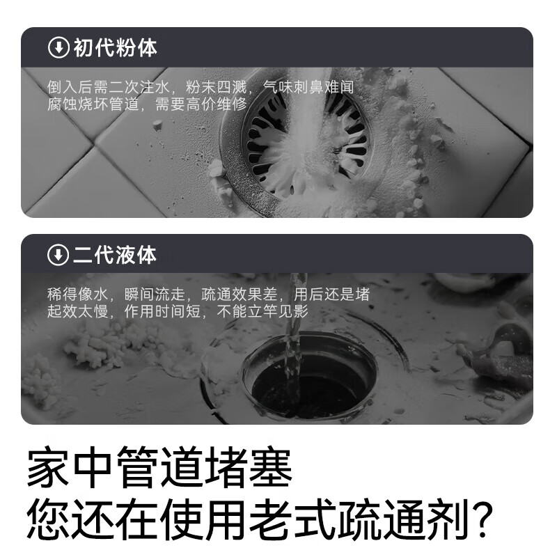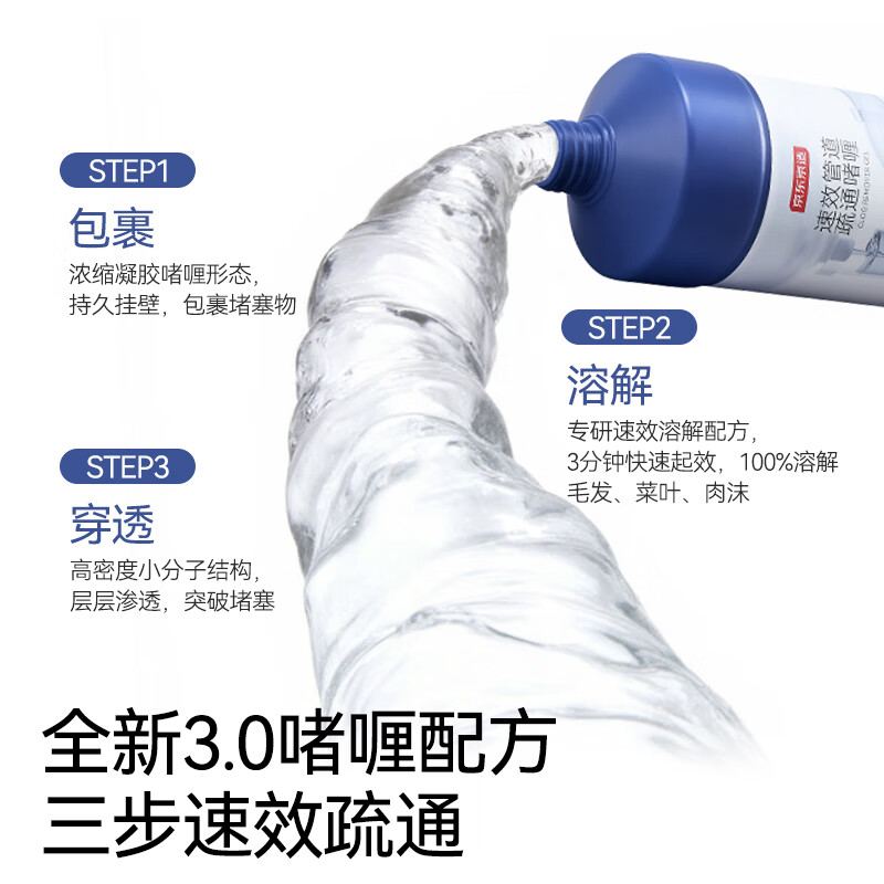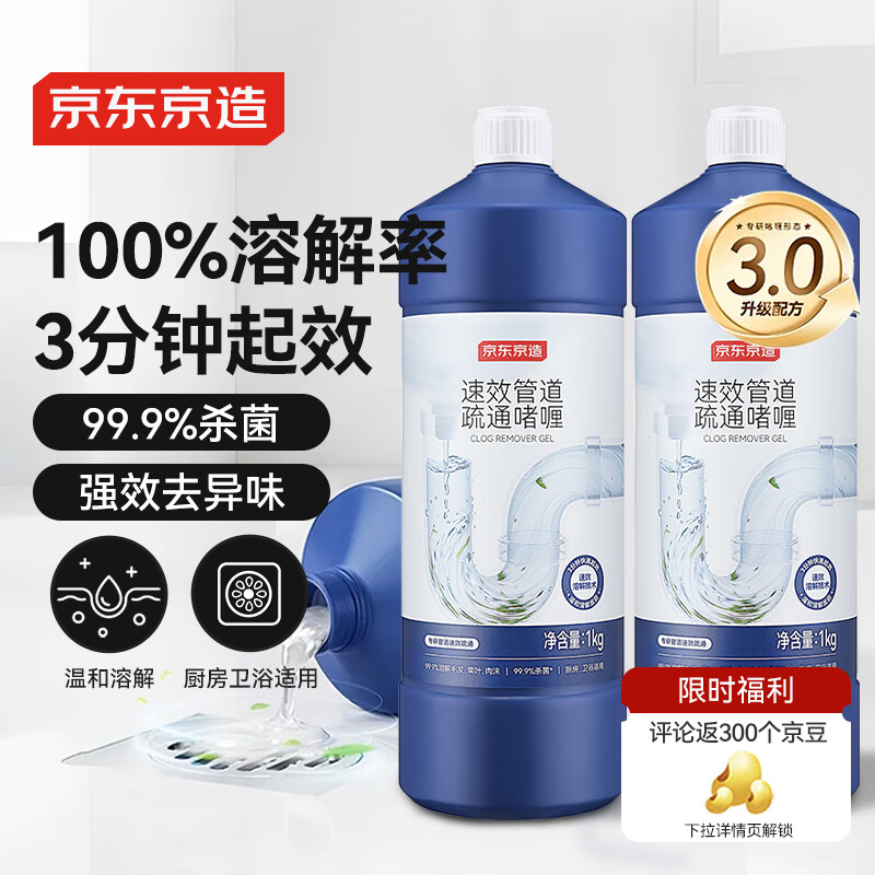 京东京造专研管道速效疏通啫喱1KG*2瓶 下水道疏通剂马桶卫生间管道疏通