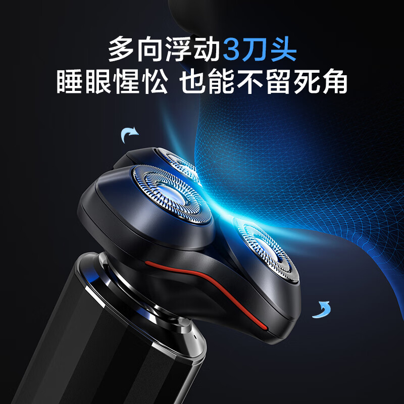 京东京造三头剃须刀便携款 长续航电动刮胡刀电动胡须刀电动剃须刀旋转式剃须刀可水洗 生日礼物男