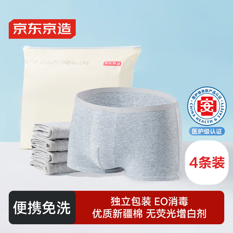 京东京造 纯棉一次性内裤男士平角内裤EO灭菌免洗日抛出差旅行4条装XXL码